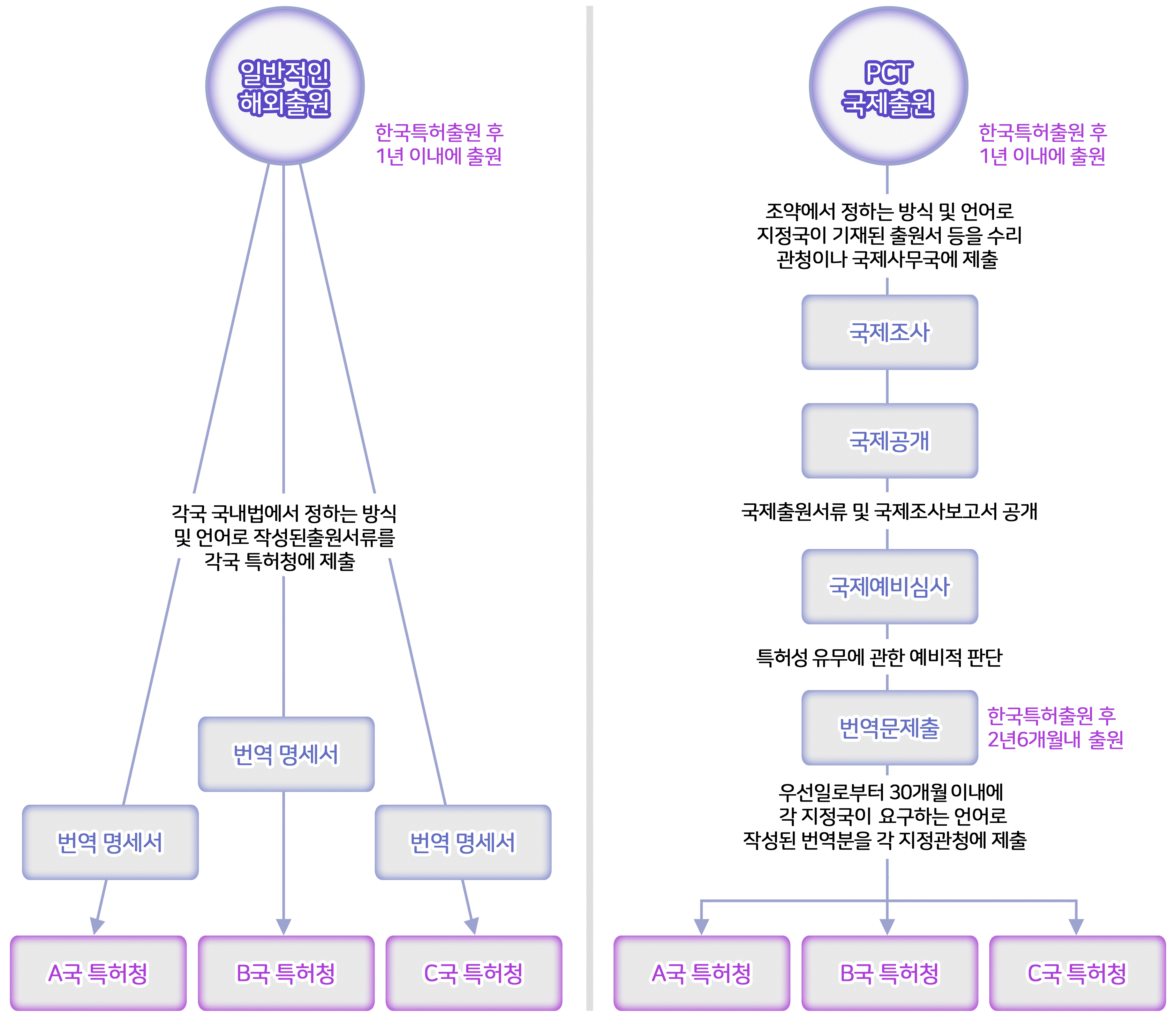 과거에는 한국에 특허출원 후, 1년 이내에 특허받고자 하는 모든